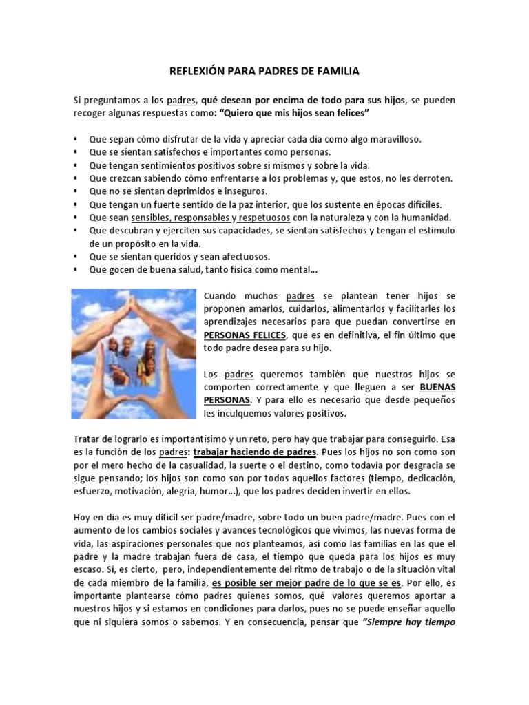 Aprovecha este día para reflexionar sobre todo lo que tu padre significa lo que te enseñó y dio a los largo de su vida. Reflexiones para Padres Cuando los niños son pequeños dependen totalmente de sus padres.