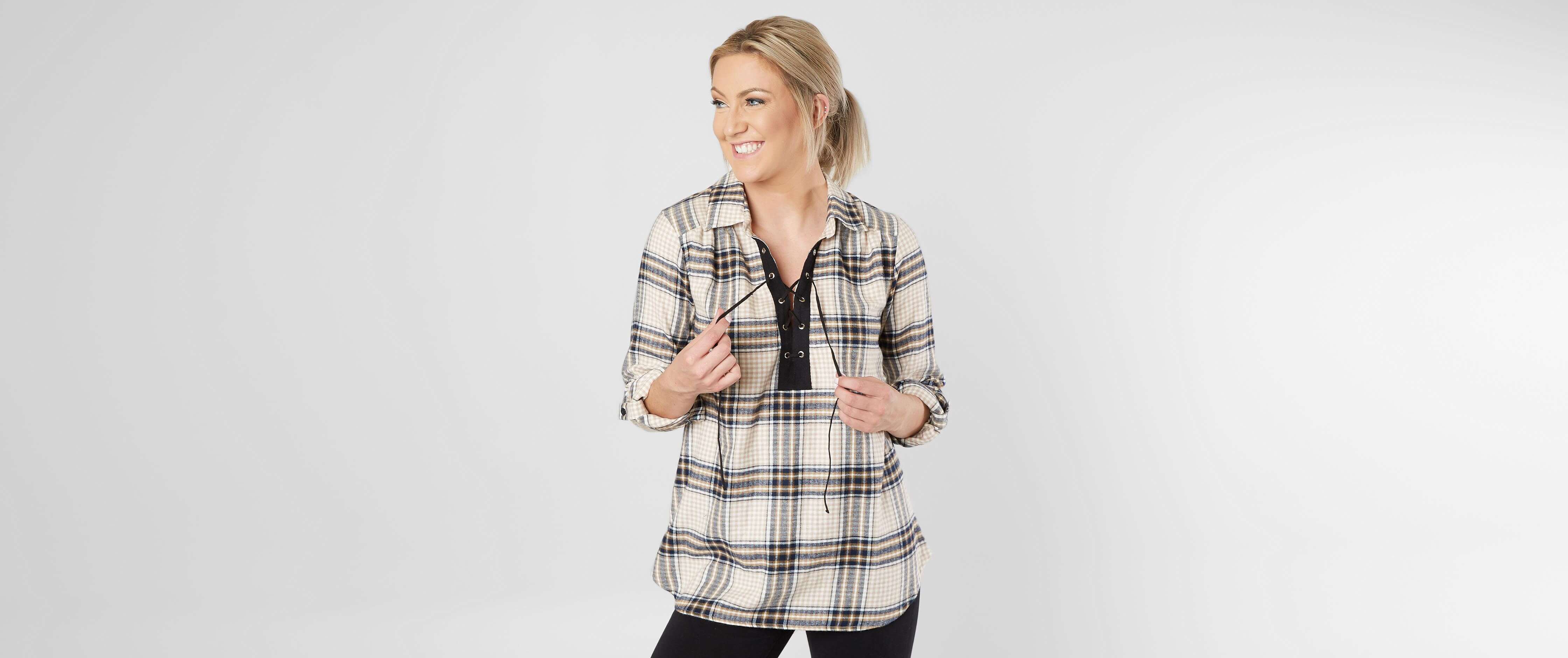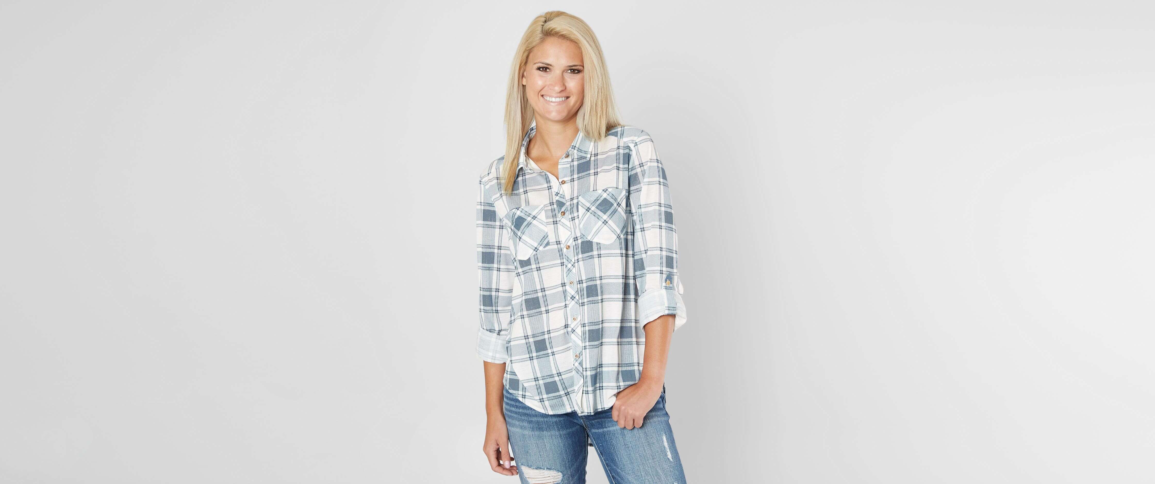 Blue and white plaid. SzLarge looks like med. Rated 4 out of 5 by areyes from Great for Fall Soft Fall shirt size up if you are busty. Rated 2 out of 5 stars by 1 reviewer. However the metallic threads can be a little bit scratchy or itchy and they also arent very strong. Blue and white plaid. Plaid shirt Brand is Daytrip purchased from Buckle. 1 Original Price 2500 Sale Price. True to size Small medium large Pattern.